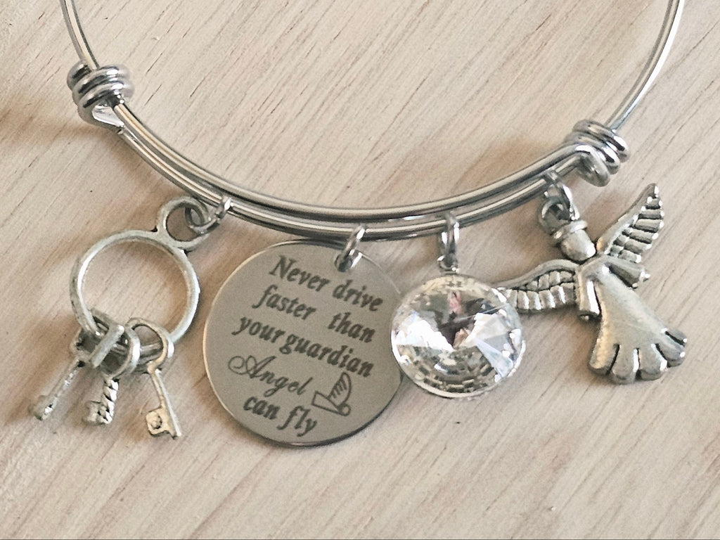 Expandable Charm Bracelet - Never drive faster than your guardian angel can fly