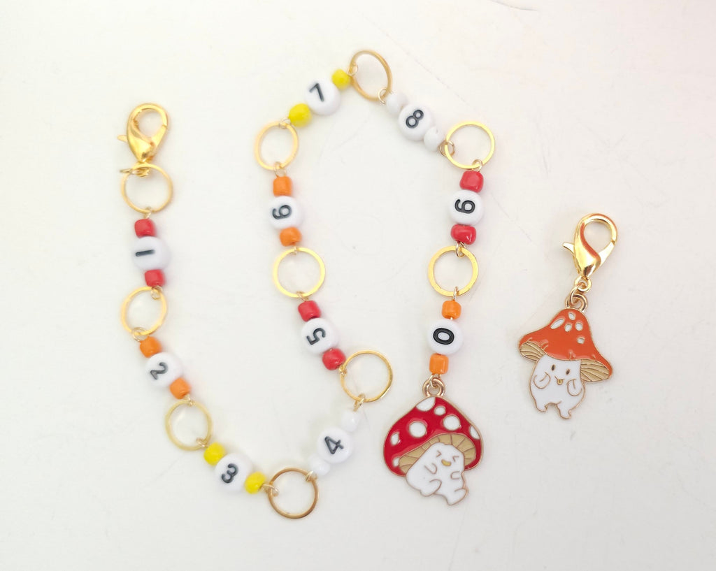 Multi-color Beads Row Counter Chain with a cute mushroom character at the end.
