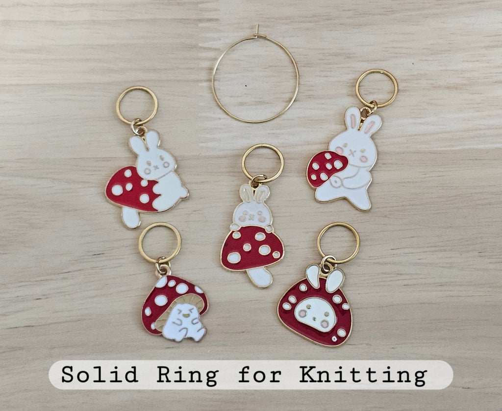 Mushrooms and Bunny Stitch Markers Set of 5 Rabbit Knitting Crochet Stitch Marker Progress Keepers Stitch Counter Place Marker